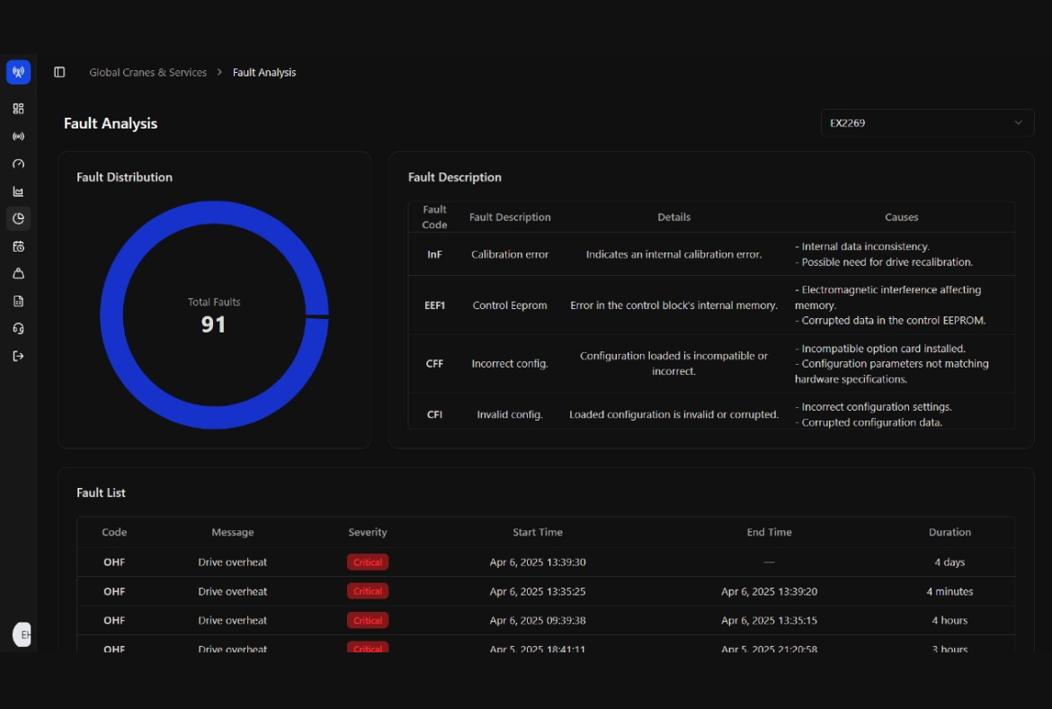 Our state-of-the-art IoT platform enables real-time tracking, analysis, and reporting of crane operations. Benefits include